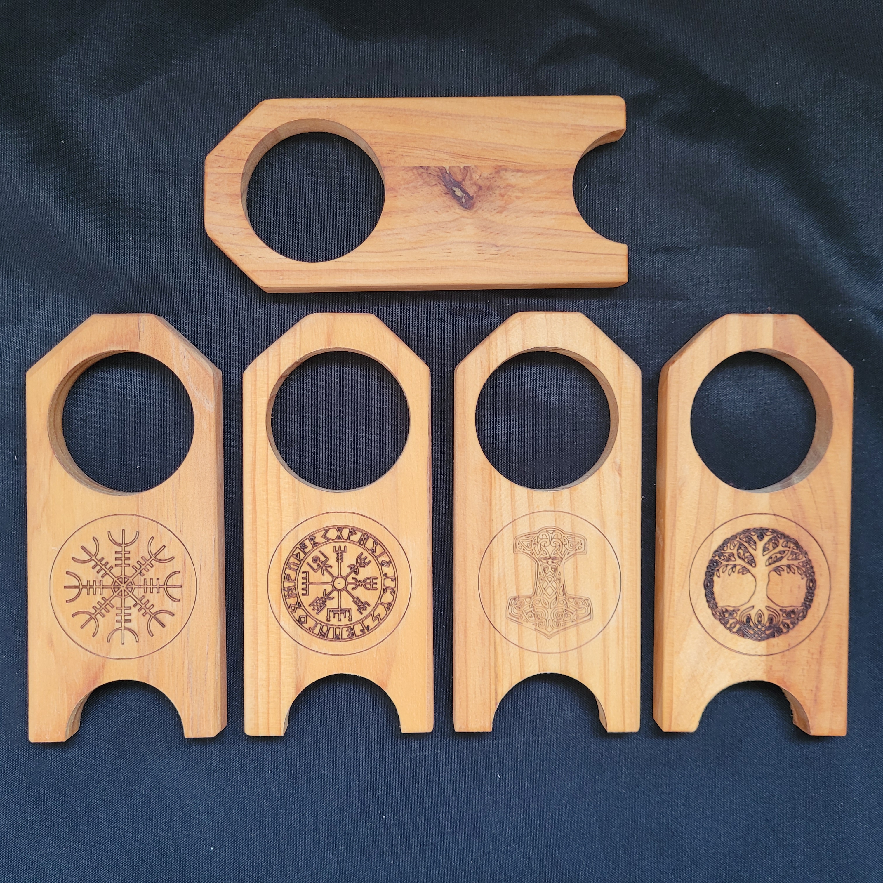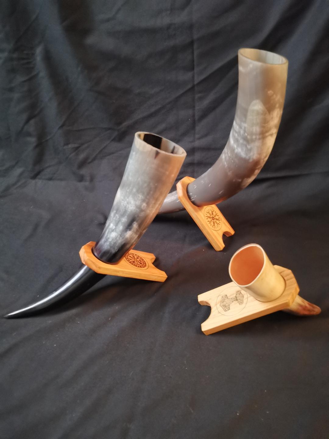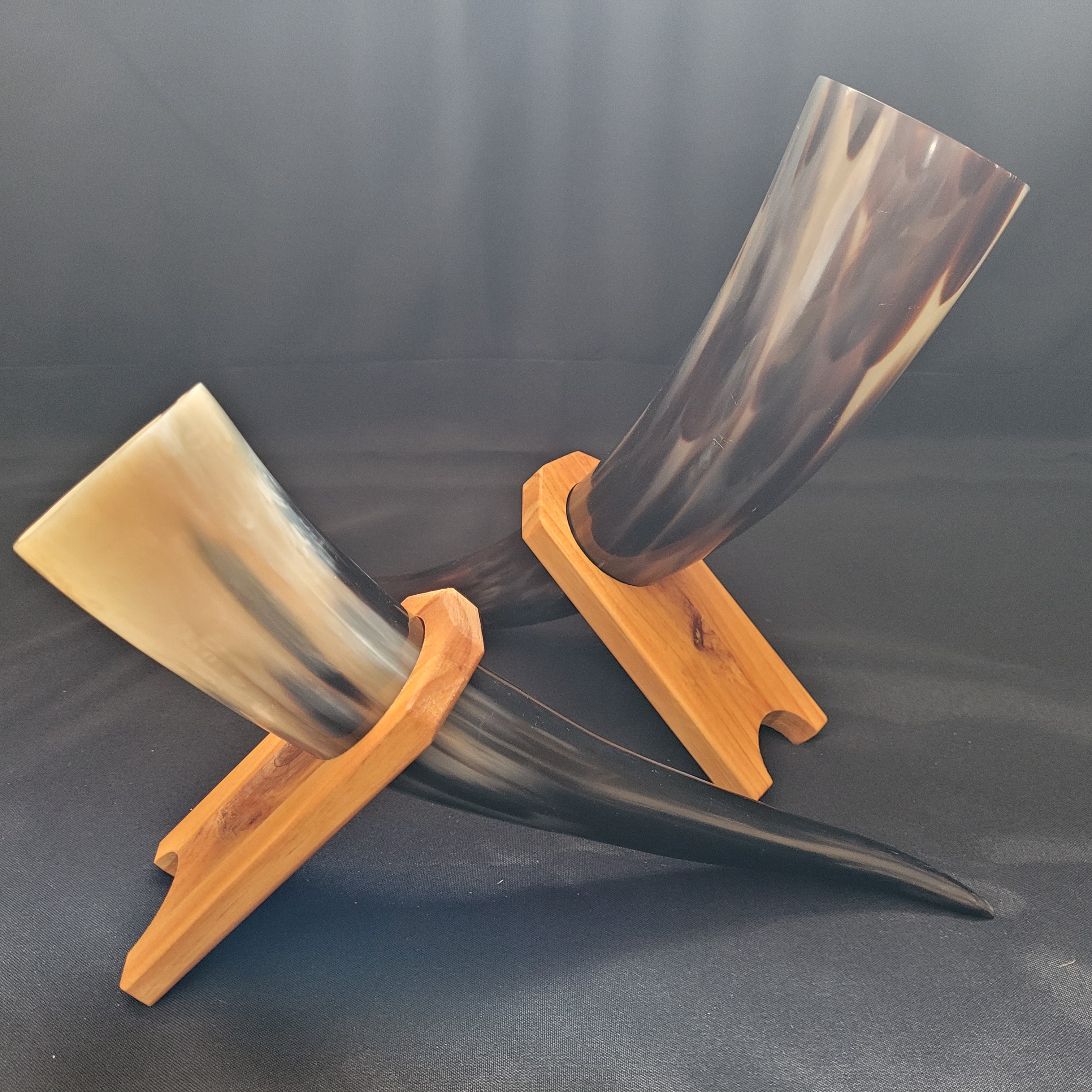 These drinking horn stands meet the need for you to be able to set your drinking horn down without spilling your Mead! The design has been tested with a variety of different sized drinking horns to allow for an almost universal fit (a limited number of very large capacity drinking horns will not fit)