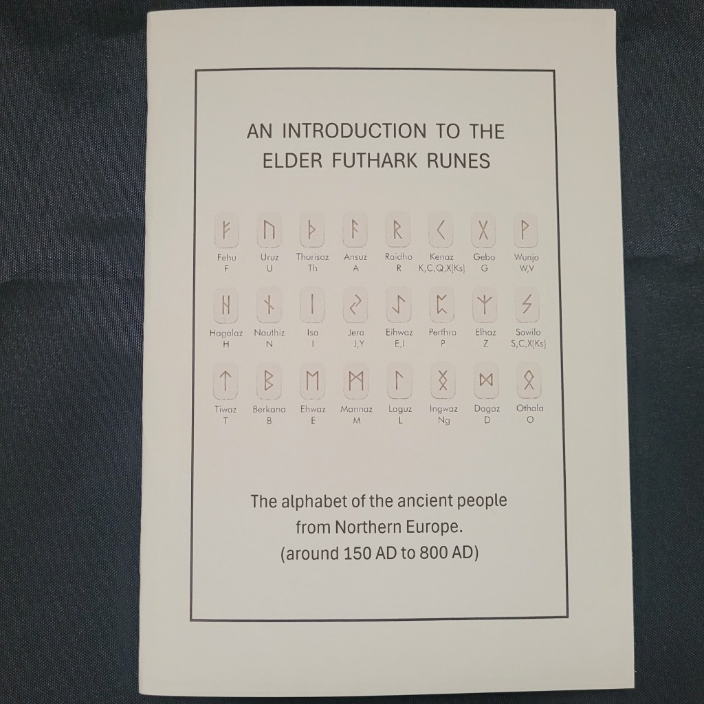 Booklet printed on card stock providing the reader with an introduction to the Elder Futhark runes.