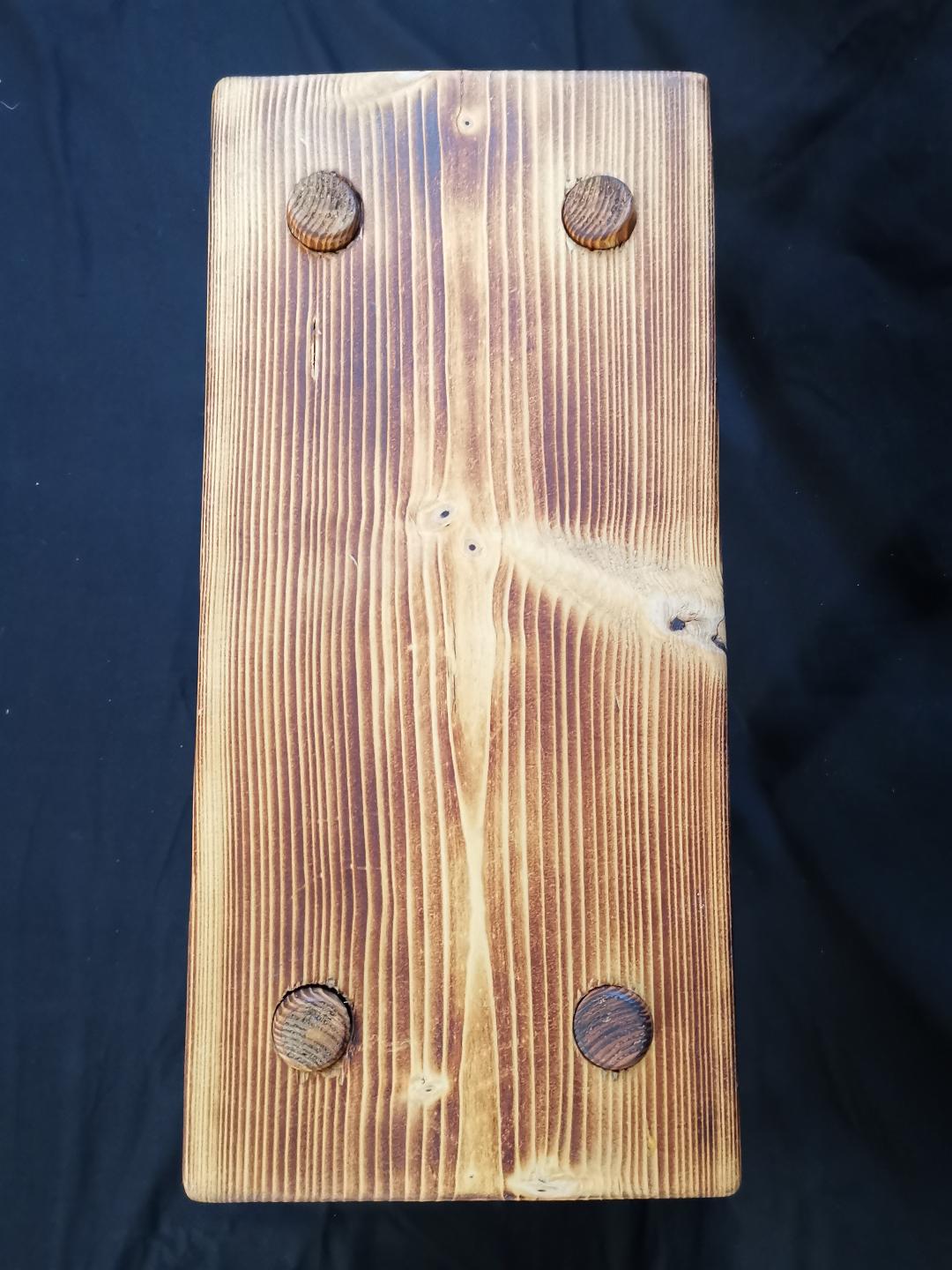 Once sanded smooth all surfaces receive a scorched finish to tighten the wood grain and a coat of boiled linseed oil to aid weather resistance.