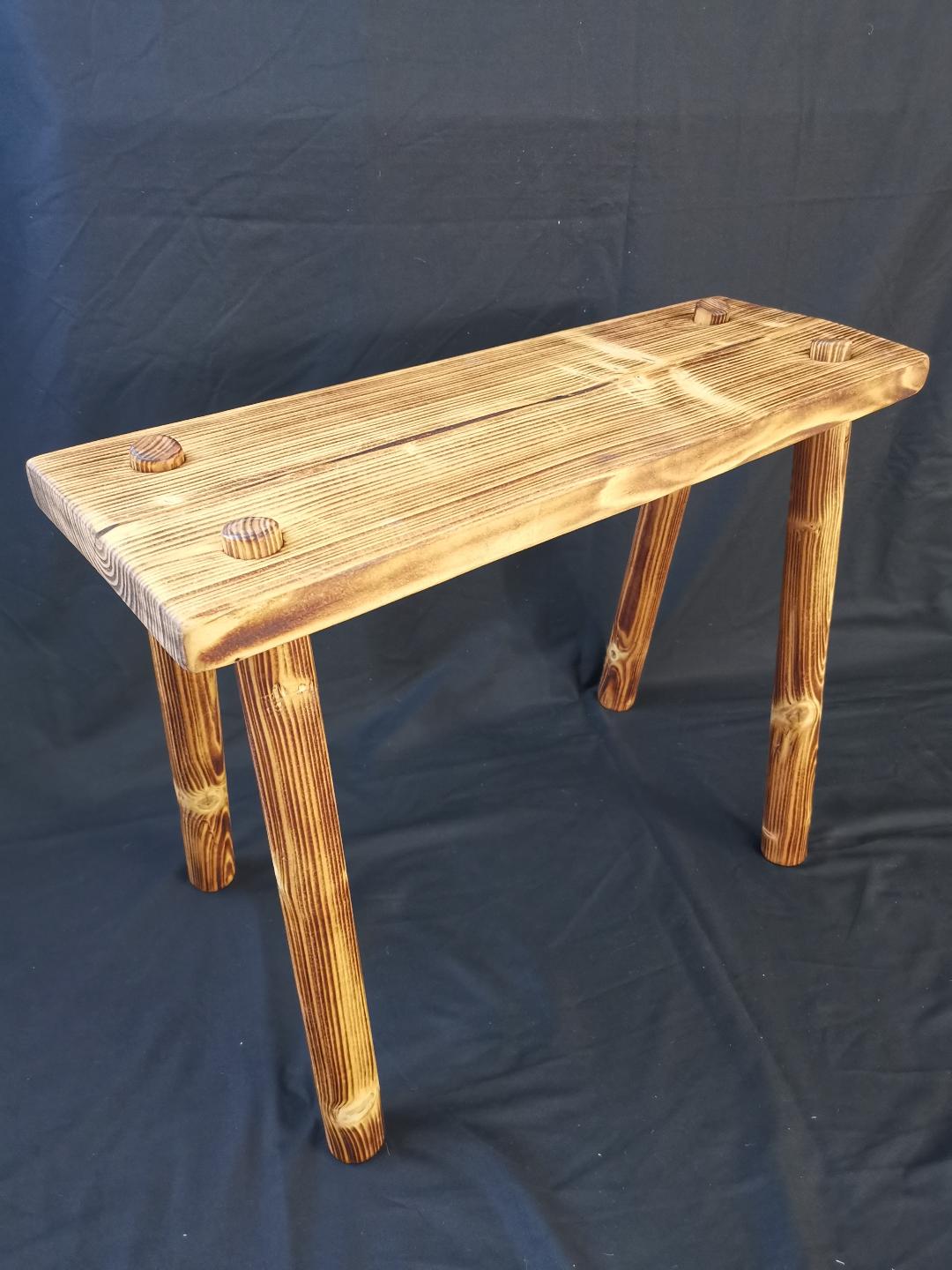They feature a leg set with a ‘tenon’ that locates into a ‘through mortice’ (technical way of describing a hole through the seat) The legs are angled to around 10 degrees to increase stability and safety while being used.